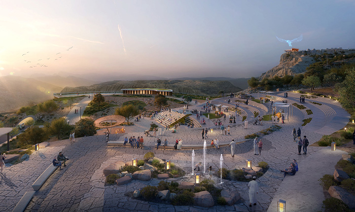 Al Jabal Al Aali is a mixed-use destination at the highest inhabited point on Jebel Akhdar's plateau, Oman, with a naturally cool climate, mountain views, and a striking natural landscape.